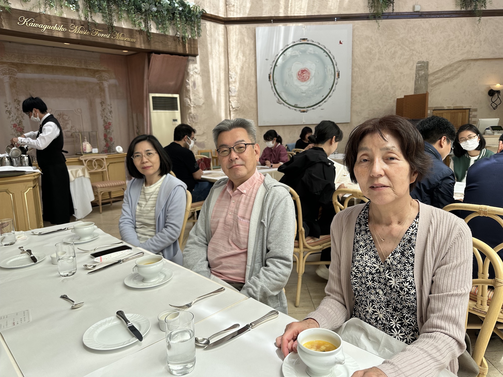 富士山が眺められ河口湖の辺りにあります「音楽と森の美術館」を見学し、館内の森のレストランにてランチコースメニューを頂きました。