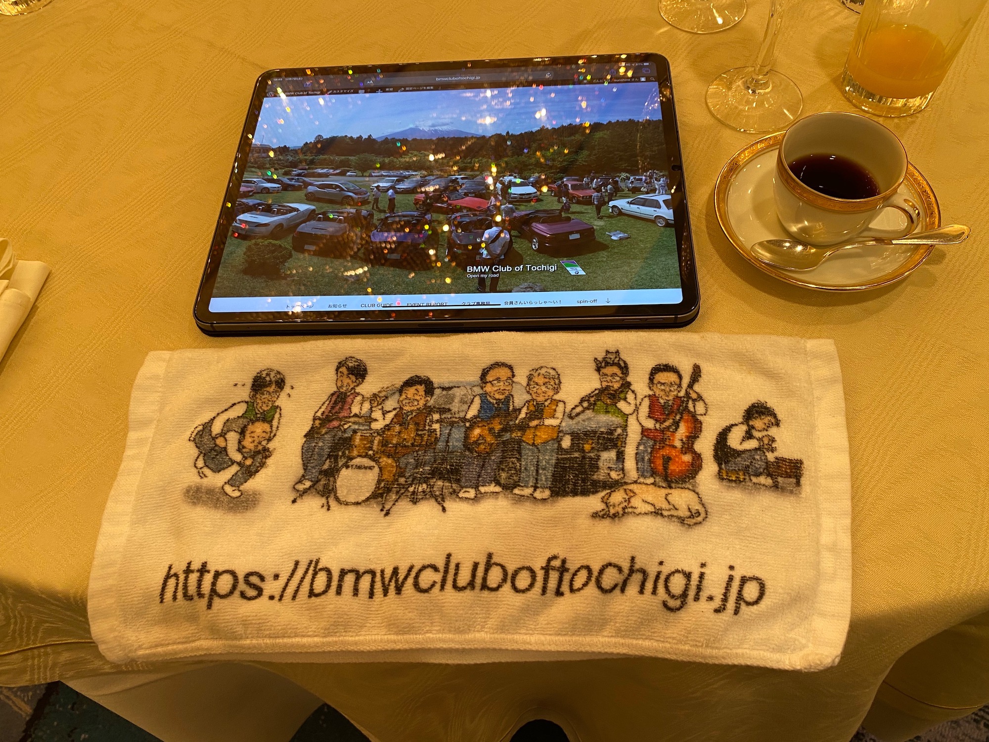 ニコル様より頂いたシャンパンでの乾杯で始まりホテルのコース料理をいただきながら、いつものようにBMW談義や色々な話題で大変楽しんで頂けたと思います。