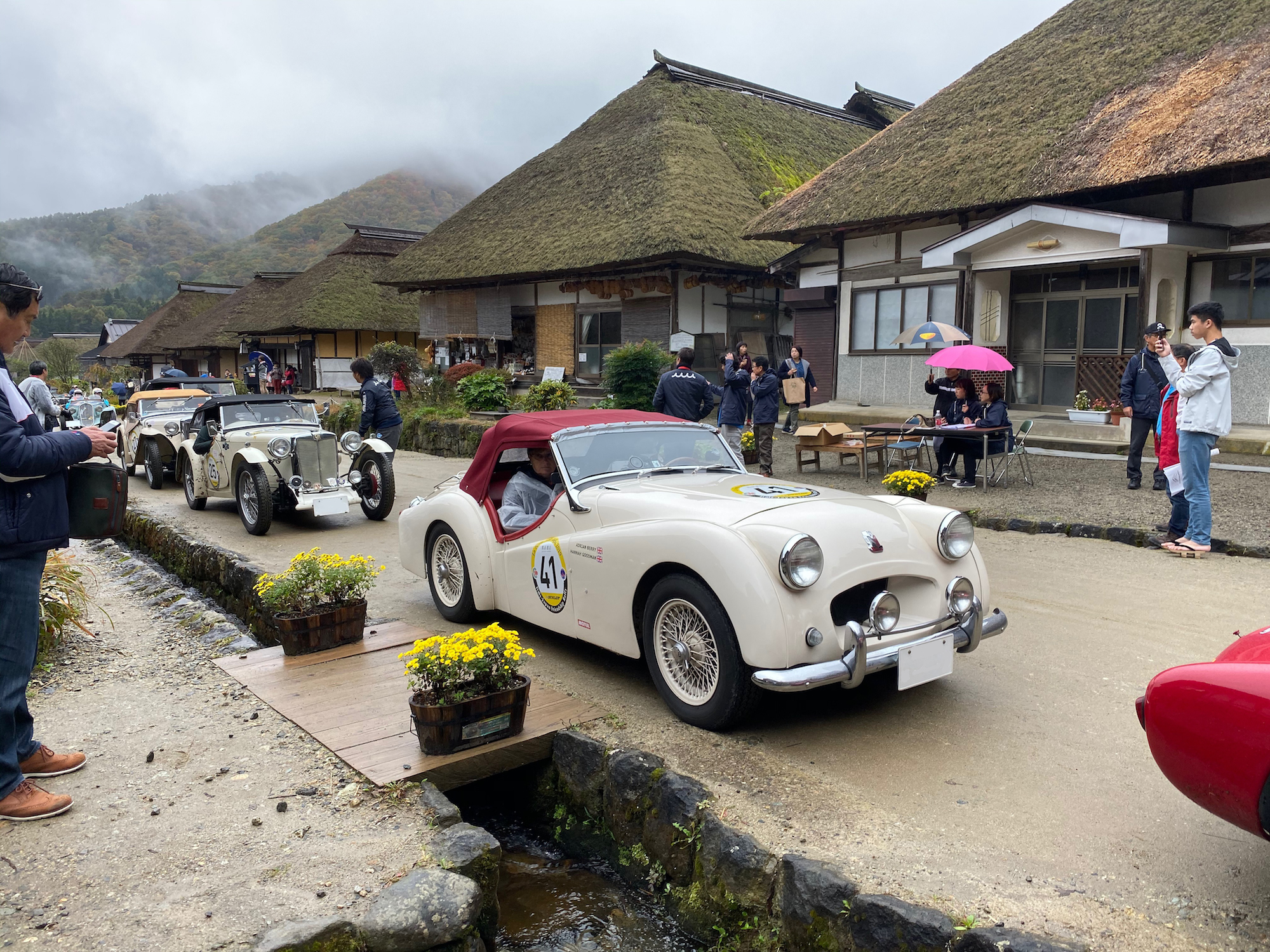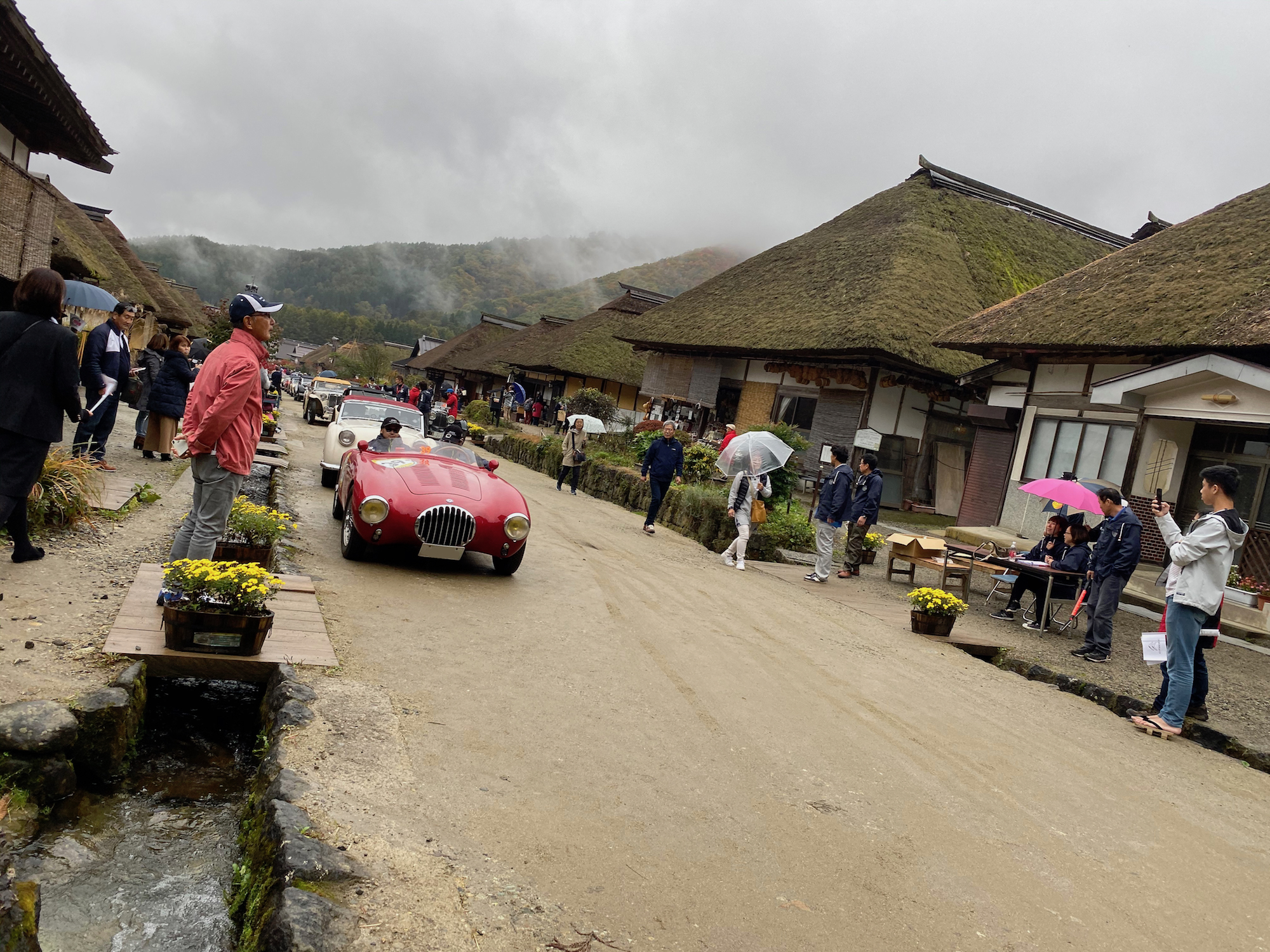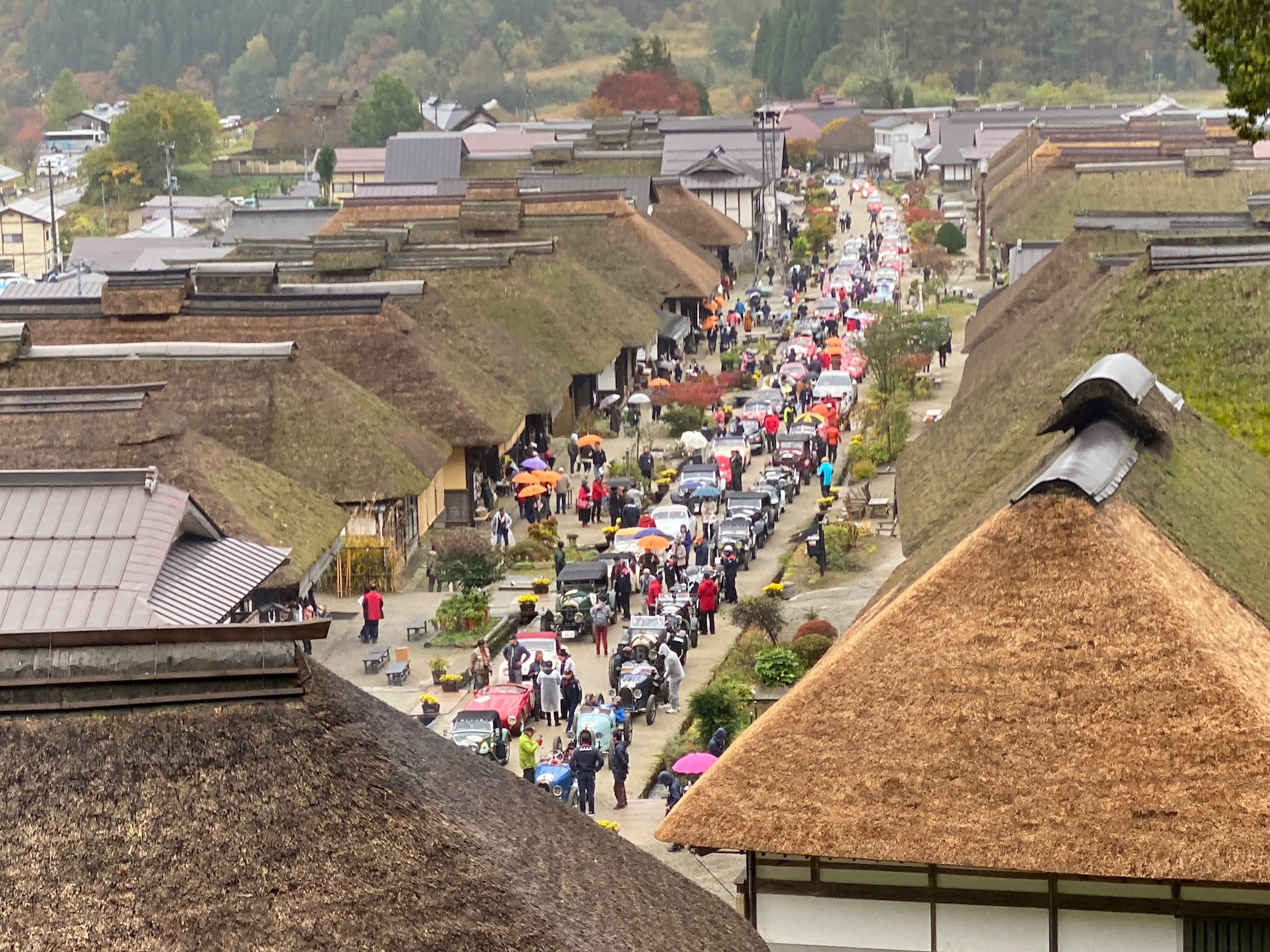 10月27日 台風19号により延期しましたイベントですが皆様のおかげで無事開催する事が出来ました。有難うございました。大内宿ではタイミングよく「ラ・フェスタ・ミッレミリア」というクラシックカーのイベントが行われており、普段は見る事がなかなか出来ないようなクラシックカーをまじかで見る事が出来ました。昼食の川どこですが、何とか雨は止みましたので外での食事となりました。原瀧のスタッフの方々には大変お世話になりました。  m(_ _)m